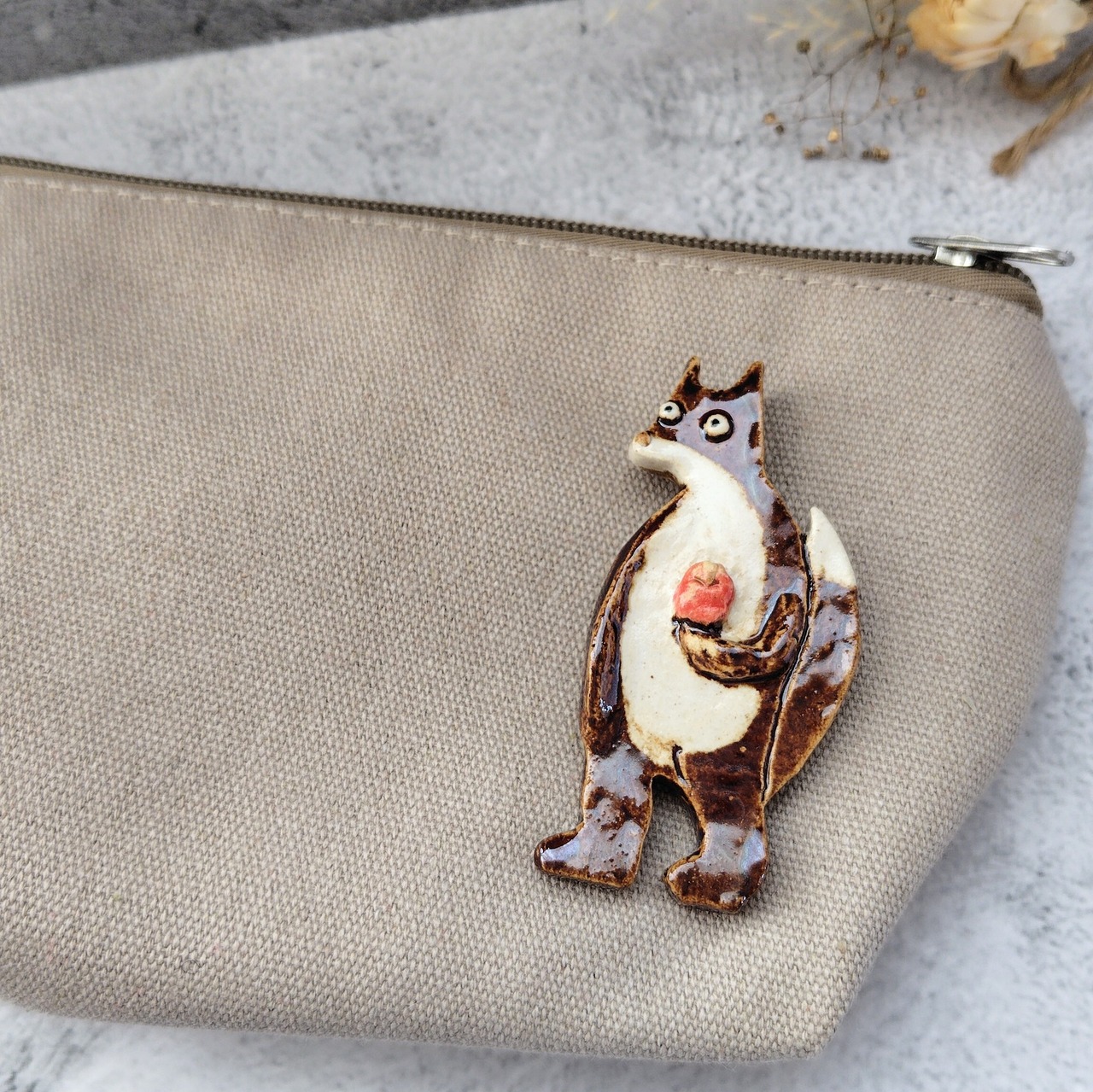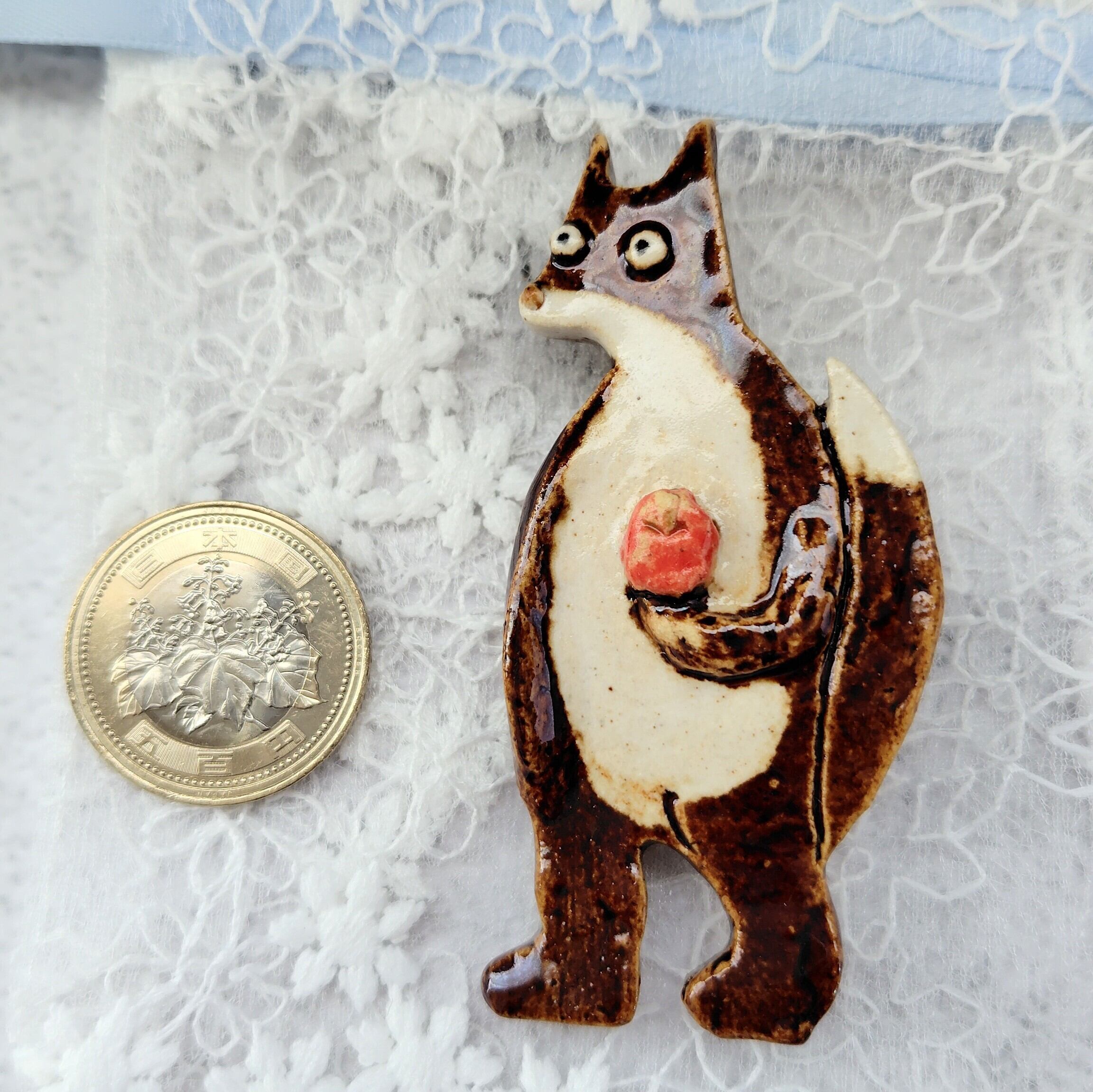 棒立ちシリーズ キツネのブローチ(リンゴ)